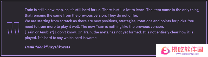 Spirit的步枪手donk分享了他对在Train地图上比赛的印象。他认为,这张地图的更新版本与之前的版本差异太大,因此所有队伍都从零开始准备: