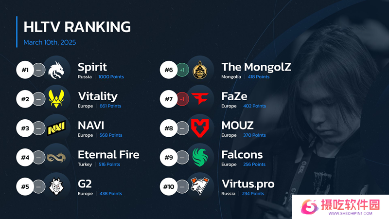 HLTV本周世界排名:Spirit位列第一,TYLOO升至第23名
